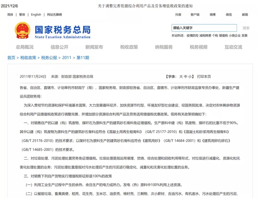 國家稅務(wù)總局《關(guān)于調(diào)整完善資源綜合利用產(chǎn)品及勞務(wù)增值稅政策的通知》,明確指出: 為深入貫徹節(jié)約資源和保護(hù)環(huán)境基本國策,大力發(fā)展循環(huán)經(jīng)濟(jì),加快資源節(jié)約型、環(huán)境友好型社會建設(shè),經(jīng)國務(wù)院批準(zhǔn),決定對農(nóng)林剩余物資源綜合利用產(chǎn)品增值稅政策進(jìn)行調(diào)整完善,并增加部分資源綜合利用產(chǎn)品及勞務(wù)適用增值稅優(yōu)惠政策。